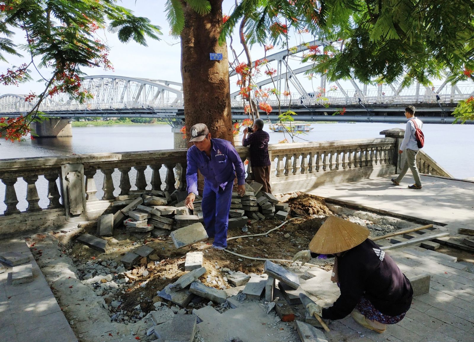 Để bảo vệ cây phượng, Trung tâm Công viên cây xanh Huế vừa tiến hành đốn cây đoác lâu nay mọc lấn vào cây phượng, dỡ hệ thống đá lát nền để mở rộng ô cây chiều rộng từ 1 mét lên 2,2 mét, chiều dài từ 2 mét lên 4,2 mét, đồng thời tiến hành đánh rêu, xử lý nấm mốc quanh thân và gốc để bảo vệ sức khỏe và nâng cao tuổi thọ cây.