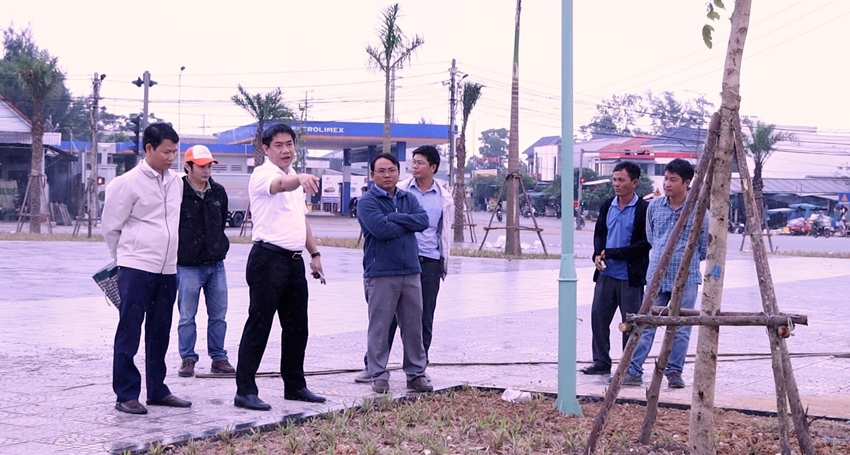 | Bí thư Huyện ủy Phú Vang (thứ 3 bên trái) đề nghị chú trọng chất lượng công trình, đảm bảo tiến độ |