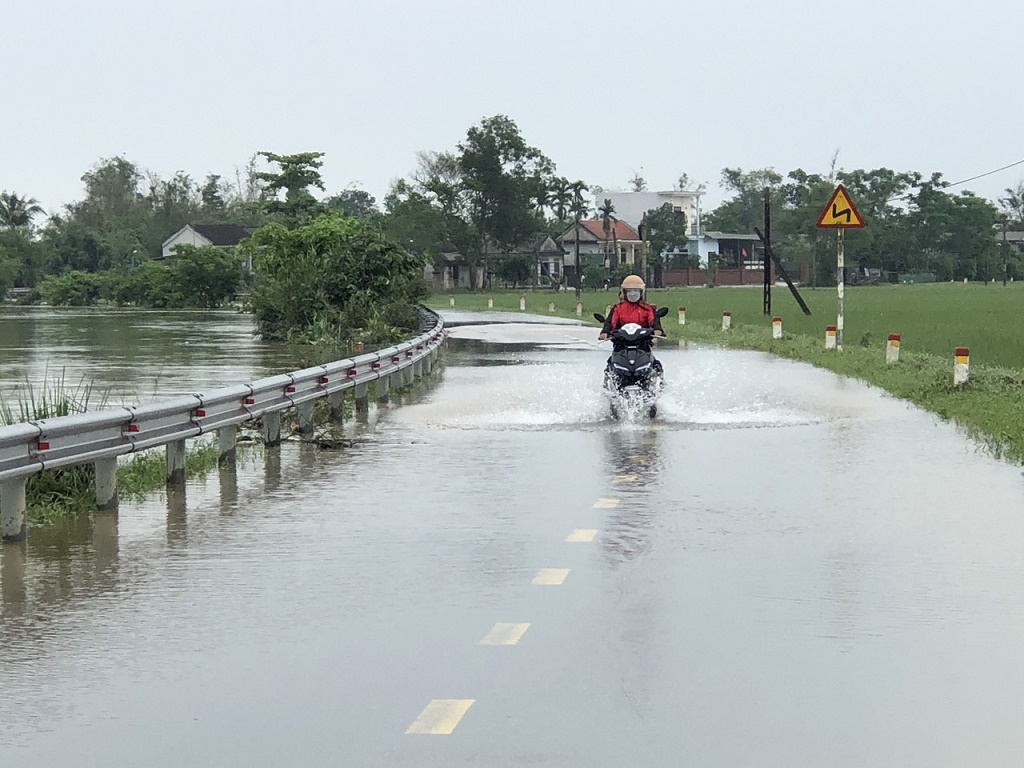 Quốc lộ 49B đoạn qua xã Phong Bình còn ngập