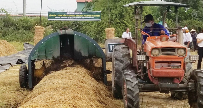 Mới đây, tại HTX Nông nghiệp An Lỗ (Phong Điền), Trường đại học Nông Lâm phối hợp với IRRI tổ chức nghị tập huấn, trình diễn về xử lý và sử dụng rơm rạ theo hướng nông nghiệp tuần hoàn và phát thải thấp cho người dân địa phương. Dịp này, người dân phấn khởi hào hứng khi mắt thấy tai nghe, được các chuyên gia, nhà khoa học hướng dẫn kỹ quy trình ủ rơm rạ làm phân bón hữu cơ bằng cơ giới hóa, như: chuẩn bị luống ủ gồm rơm và phân bò, dùng máy đảo trộn luống ủ lần đầu, quá trình giữ nhiệt, thông thoáng, làm mát và quá trình thành phẩm phân hữu cơ… Đây là quy trình được kết hợp giữa vật lý và sinh hóa để tối ưu quá trình phân hủy rơm hiệu quả và chất lượng bằng cơ giới máy trộn liên kết máy kéo đảo trộn rơm liên kết. Thời gian cho việc dùng rơm ủ phân hữu cơ với công nghệ này là 45 ngày, bằng một nửa so với phương thức ủ truyền thống, như ủ phân thủ công hoặc dùng xe xúc.