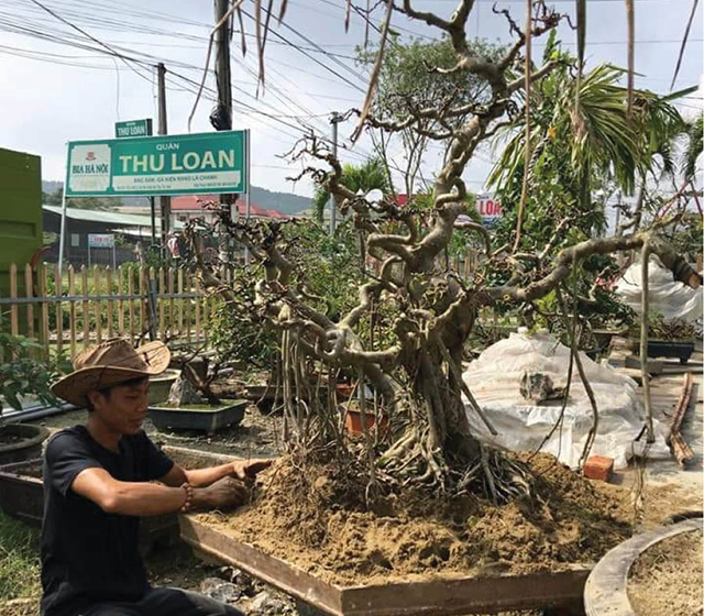 Anh Đ. (40 tuổi), nhà ở đường Điện Biên Phủ, đã hơn 15 năm rong ruổi theo cây cảnh, anh so sánh sự gian nan của việc “săn” cây cảnh chẳng kém những người đi tìm trầm ngày xưa.