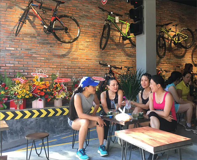 Chủ quán cà phê Anh Khoa ở đường Nguyễn Huệ - nơi trưng bày, sửa chữa, mua bán, cho thuê xe đạp địa hình, xe thể thao nói: “Mình xuất phát là dân chơi thể thao, đặc biệt là bộ môn xe đạp. Từ thế mạnh đó, mình mở quán cà phê để anh em trong giới chơi xe có tụ điểm để trao đổi, mua bán các dòng xe đạp thể thao, địa hình yêu thích”.