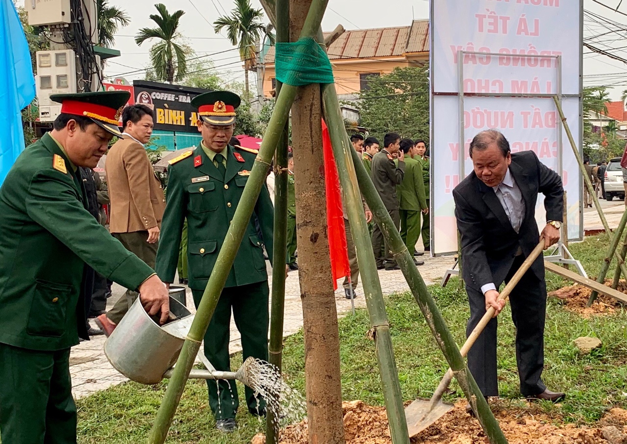 Lãnh đạo TX. Hương Thủy tham gia trồng cây sáng 30/1