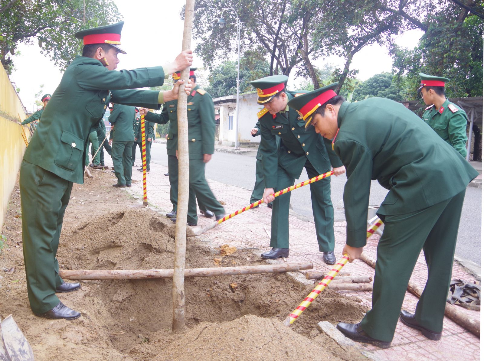 * Bộ Chỉ huy Quân sự tỉnh cũng đã phát động các cơ quan, đơn vị trồng cây đầu năm mới với chỉ tiêu, mỗi cán bộ, chiến sĩ trồng từ 10 - 15 cây lấy gỗ, 5 đến 10 cây ăn quả, cây bóng mát.