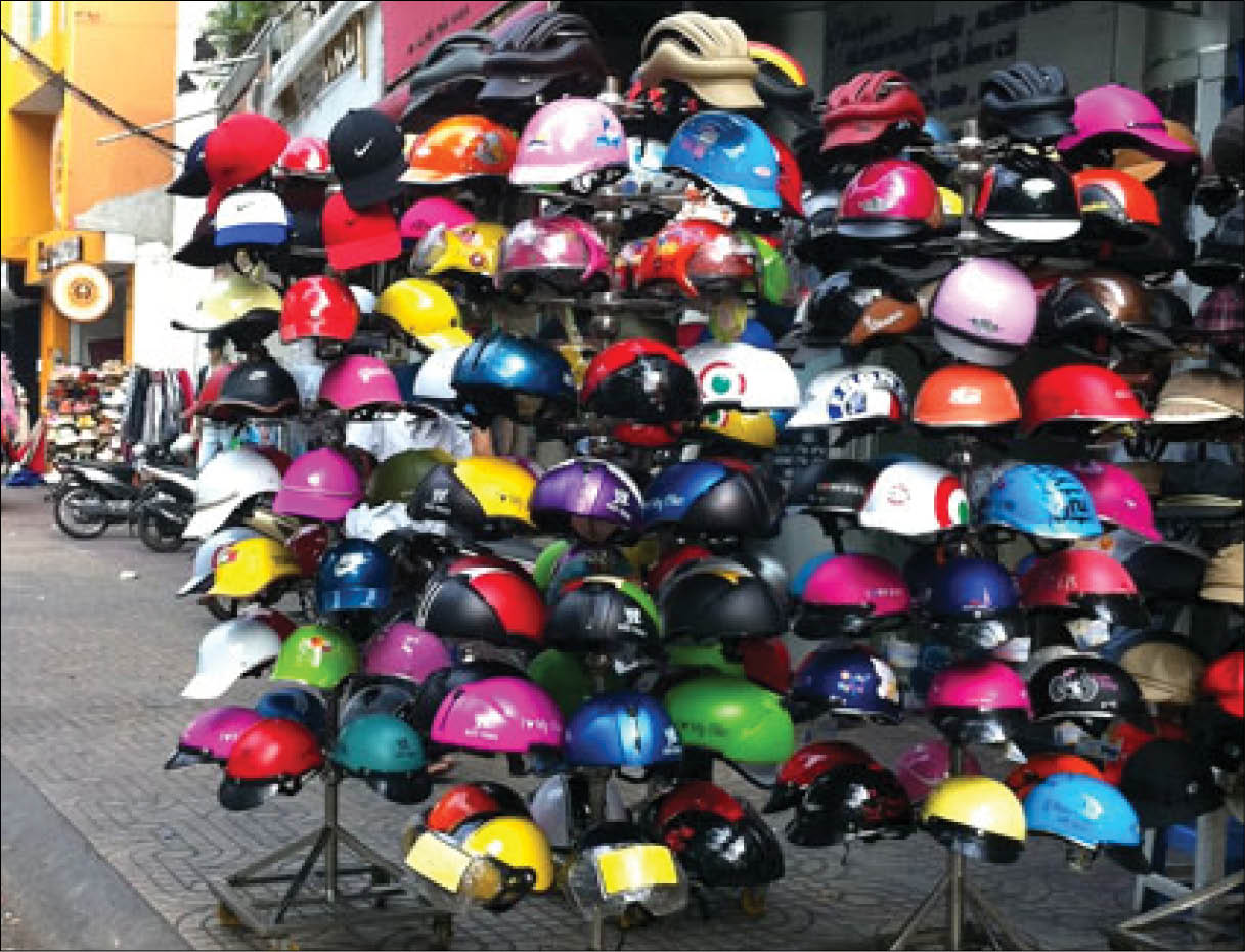 Mũ bảo hiểm đủ kiểu, màu sắc nhưng chất lượng thì hầu như không được kiểm soát. Ảnh: Internet