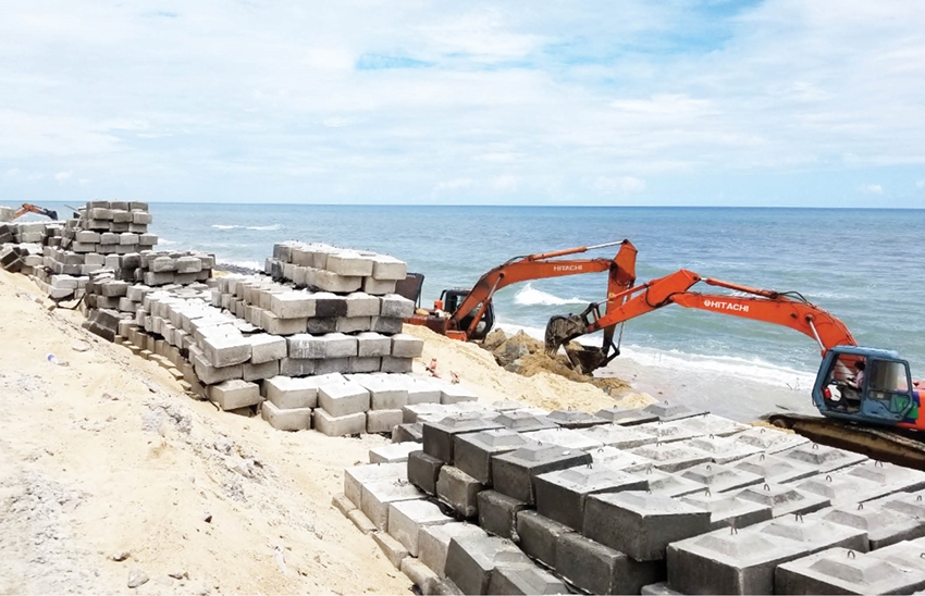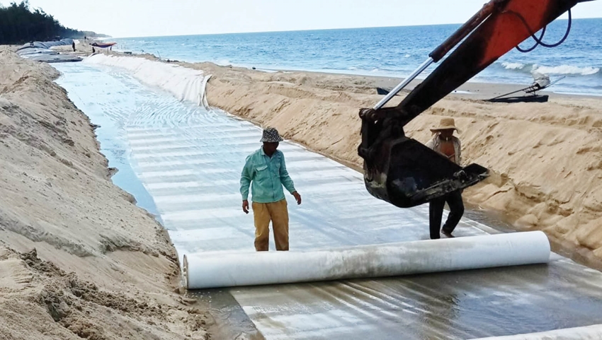 | Công trình kè biển Phú Thuận (Phú Vang) đang triển khai thi công |