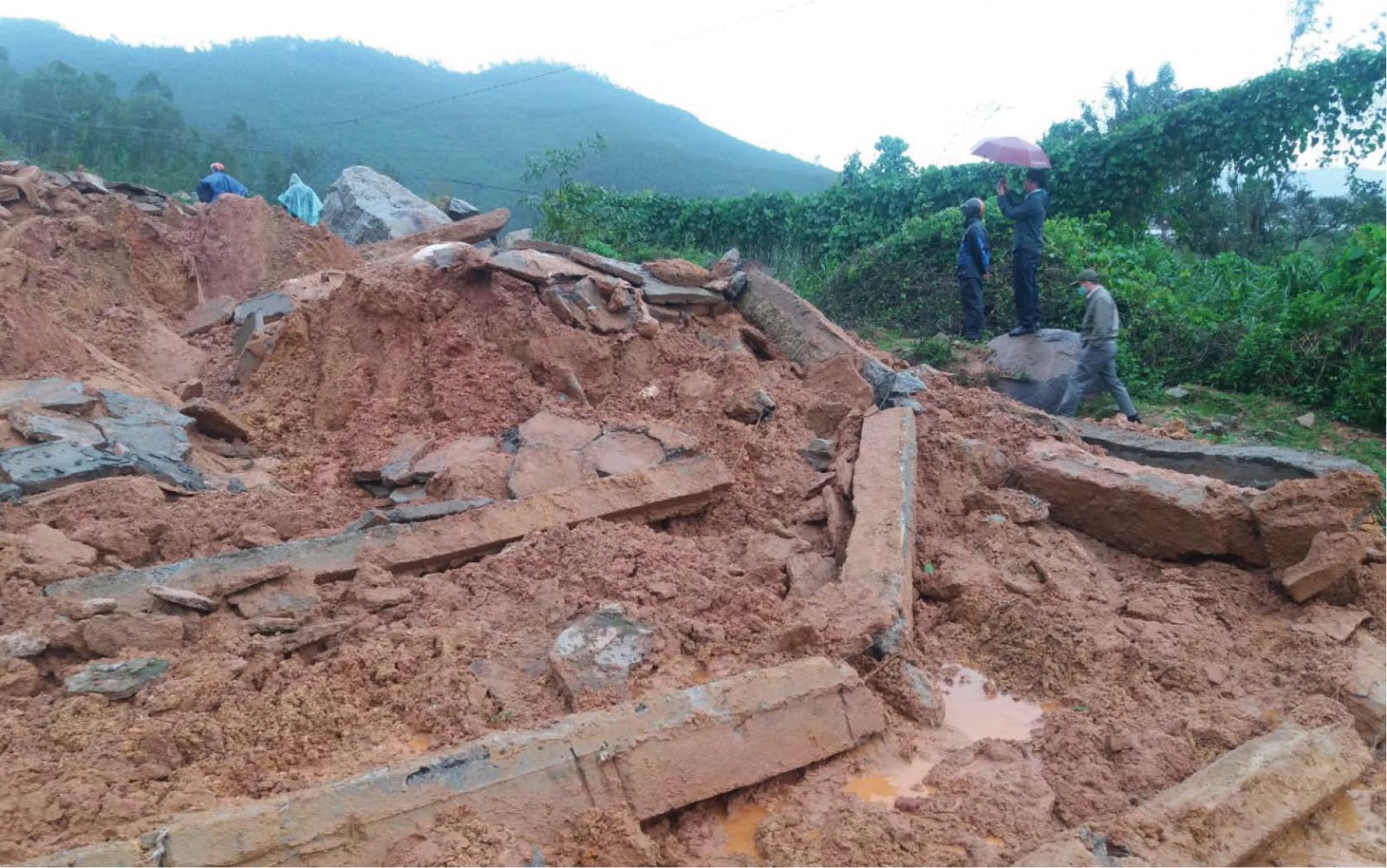 Thời điểm đất đồi bị sạt lở, hệ thống dầm khung bê tông cố định taluy dương bảo vệ tuyến đường bị đứt gãy đổ xuống bên dưới với chiều dài tuyến đường bị vùi lấp khoảng 70-100m. Sau khi sự cố xảy ra, Ban Quản lý Khu Kinh tế-Công nghiệp tỉnh đã phối hợp với chính quyền địa phương huy động nhân lực, phương tiện máy móc giải phóng hiện trường, hiện công tác khắc phục đang được triển khai.