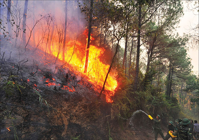 “Hạn hạn kéo dài, thời tiết luôn ở mức 38-41 độ C, dự báo nguy cơ cháy rừng luôn ở cấp 4 và 5. Hỏa hoạn xảy ra ở những địa hình phức tạp, độ dốc lớn, xa nguồn nước, di chuyển khó khăn… Không ít người dân làm gỗ, chặt củi, rà tìm phế liệu, đốt ong... khiến nguồn nguy cơ gây cháy phức tạp trong khi dụng cụ, phương tiện phục vụ chữa cháy rừng (nhất là xe cứu hỏa được thiết kế 1 cầu) chỉ phát huy hết hiệu quả ở những nơi đất bằng, không đảm bảo việc ứng cứu khi có cháy rừng lớn xảy ra”, ông Thuận lý giải về nguyên nhân số vụ cháy tăng cao và diện tích rừng bị cháy lớn.