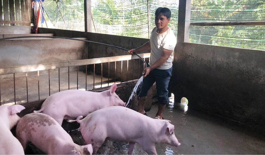 Lúc đó là buổi trưa, khác với sự yên tĩnh bởi ai nấy đang nghỉ ngơi sau một buổi sáng lên nương, lên rẫy, không gian khu vực nhà vợ chồng anh Mạnh “nhộn nhịp” bởi đan xen tiếng đàn heo đòi ăn sau nhà, tiếng đàn gà chạy quanh sân và tiếng bò ọ. “Chẳng có trưa nào mình ngủ cả, bởi công việc không ngơi tay. Một ngày bắt đầu từ 5 giờ sáng, quần quật có khi đến 7 giờ tối mới tạm ổn. Bận rộn thế, nhưng mình thấy vui, vì “nhờ” bận mà cuộc sống gia đình mình ngày càng tốt hơn” - anh Mạnh chia sẻ cùng nụ cười mộc mạc.