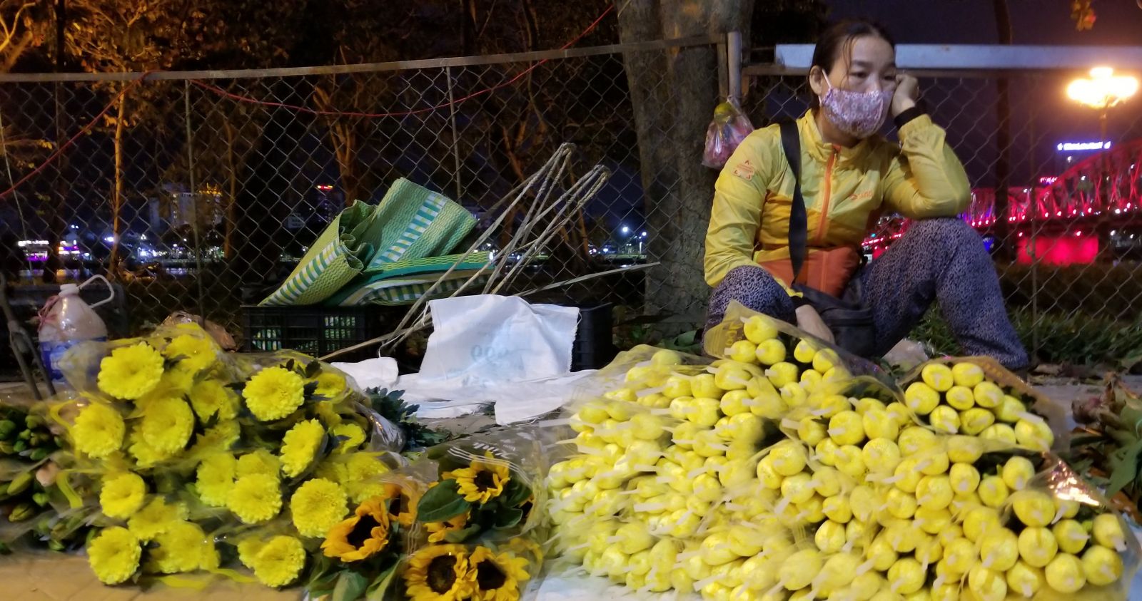 Từ trước tết khoảng một tuần, đêm nào sau khi vãn khách, chị Nhạn ở đường Phùng Khắc Khoan, TP. Huế cũng phải ngủ lại qua đêm trên đoạn đường Chương Dương, gần múi cầu Trường Tiền để giữ chỗ. Chị Nhạn trò chuyện: "Mấy ngày ni chỉ cần dọn hàng về nhà ngủ là ngày mai xem như mất chỗ. Hàng bông ba hoa quả của mình ngày thường còn gánh đi đây đó rao bán, mời mọc, chứ ba ngày tết, hàng nhập về nhiều, khách tập trung tại đây rất đông nên phải tận dụng cơ hội".