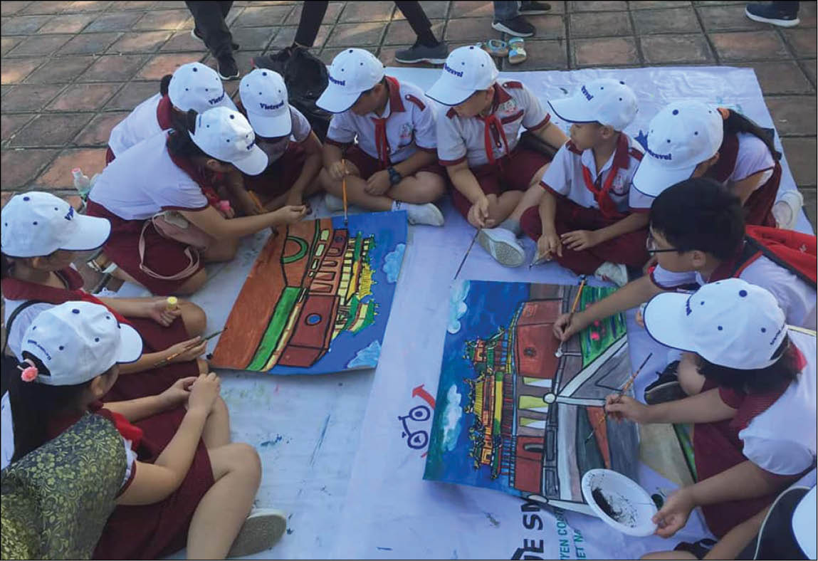 Học sinh Trường tiểu học Lý Thường Kiệt tham gia vẽ tranh