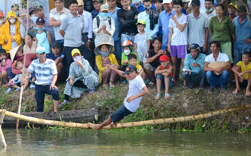 | Đi cầu khỉ - một trong những trò chơi vui nhộn tại các kỳ “Chợ quê ngày hội” |