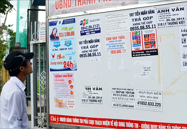 Cho vay không thế chấp được quảng cáo khắp nơi. Ảnh: Tâm Huệ