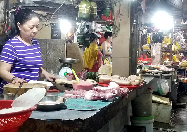 Chị Sồi, tiểu thương kinh doanh thịt lợn tại chợ Bến Ngự lạc quan: "Thịt mình có dấu kiểm dịch đàng hoàng, khách hàng khá yên tâm, tin tưởng, nên sức tiêu thụ không bị ảnh hưởng đáng kể". Những ngày này, mỗi ngày chị Sồi vẫn duy trì lấy từ lò mổ gần 5 tạ thịt lợn đem bán tại chợ và bỏ cho các nhà hàng, khách sạn, nhà máy...