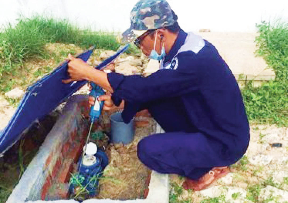 Nhân viên HueWACO dò tìm rò rỉ bằng thanh nghe điện tử