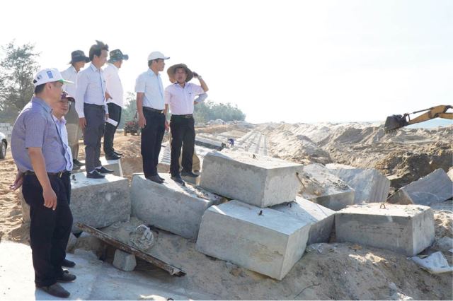 Kiểm tra tiến độ thi công kè chống sạt lở bờ biển khẩn cấp đoạn Thuận An – Tư Hiền