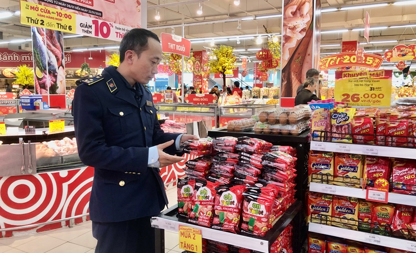 | Lực lượng chức năng kiểm tra hàng hóa tại các siêu thị, chợ dịp Tết |