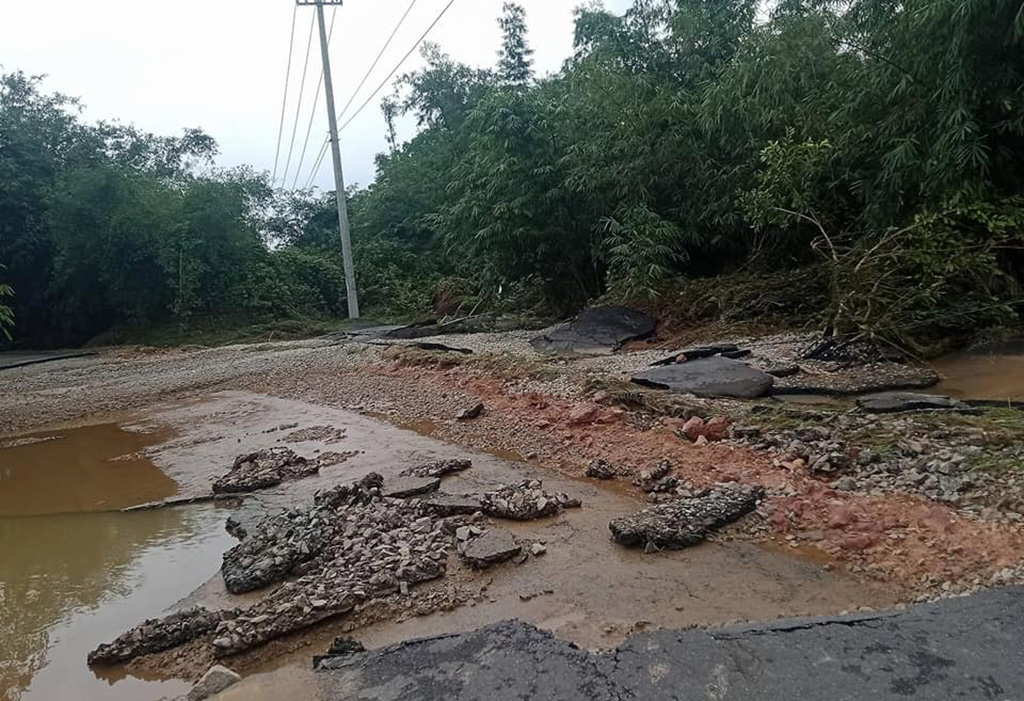 Tuyến đường ngang đoạn thôn Huỳnh Liên, xã Phong Thu hư hỏng sau khi nước lũ rút