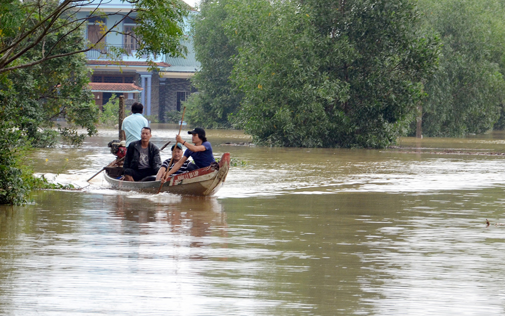 Nước ngập nên người dân Phong Điền di chuyển bằng thuyền