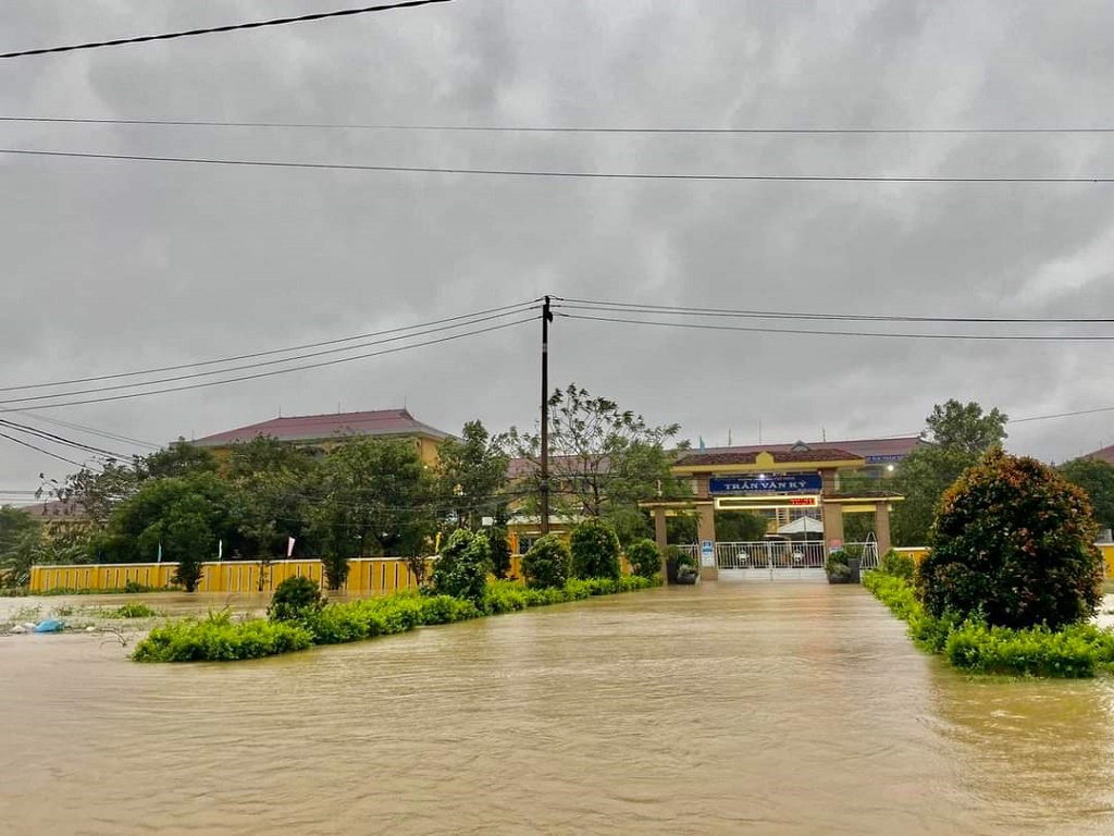 Các điểm trường vũng trũng ở Phong Điền còn ngập lũ (Trường THPT Trần Văn Kỷ, xã Phong Bình)