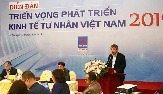 Diễn đàn Triển vọng phát triển kinh tế tư nhân Việt Nam năm 2019 do Viện Kinh tế Việt Nam tổ chức tại Hà Nội, sáng 15-3 -2019.