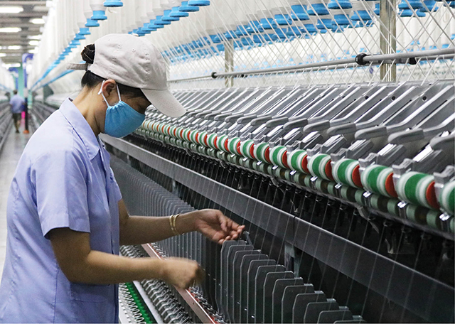 Công nhân làm việc tại nhà máy sợ thuộc Công ty CP Dệt may Huế. Ảnh: Minh Nguyên