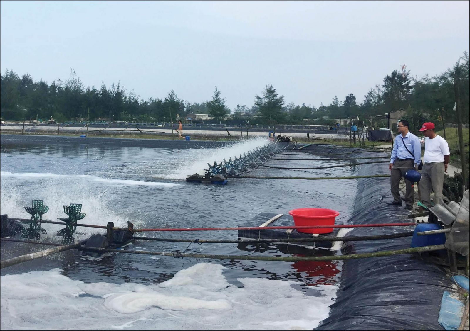 Nước thải nuôi tôm được được người dân thông qua hệ thống dẫn thải từ ao nuôi đến ao chứa lắng để xử lý trước khi thải ra môi trường. Sau khi lắng 1-2 cấp được sử dụng phương pháp sinh học (thả cá, các loại nhuyển thể...), hoặc phương pháp hóa học (dùng hóa chất để lắng chất thải trong nước) nhằm giảm nồng độ các chất thải xuống mức cho phép. Sau đó nguồn nước này được bà con thải ra hệ thống thoát nước bên ngoài... Chấp hành tốt quy hoạch, quy trình kỹ thuật nuôi theo hướng chuyên nghiệp, thời gian gần đây đã hạn chế tối đa ô nhiễm môi trường, tôm ít xảy ra dịch bệnh, nhiều hộ nuôi có lãi, một số hộ lãi từ 500 triệu đồng đến gần 1 tỷ đồng.