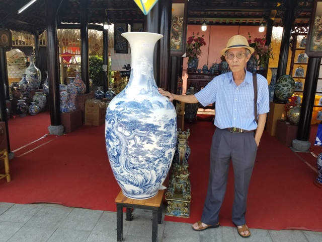 Sản phẩm Đôi Bảo bình màu lam vẽ sơn thủy của nghệ nhân Nguyễn Văn Hưng, cơ sở gốm Bát Tràng đạt giải Nhất