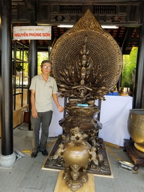 Tác giả Nguyễn Phùng Sơn, cơ sở đúc đồng Huế bên sản phẩm tượng đồng "Thiên thủ Thiên nhãn" đạt giải Nhì