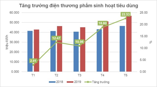 5 tháng đầu năm, mức tăng nhu cầu sử dụng điện sinh hoạt toàn tỉnh tăng trưởng ở mức xấp xỉ 13,8% so với cùng kỳ