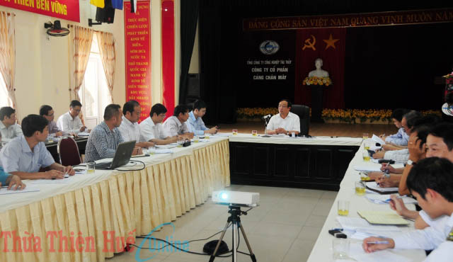 Chủ tịch UBND tỉnh Nguyễn Văn Cao đánh giá cao kết quả sản xuất kinh doanh của Cty CP Cảng Chân Mây trong 2 tháng đầu năm; đồng thời đề nghị Cty tập trung nạo vét hoàn thành dứt điểm dự án nâng cấp bến số 1 để bảo đảm an toàn cho tàu ra vào cảng.