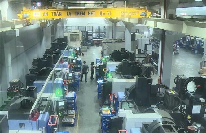 Sản xuất tại Công ty TNHH Công nghiệp Strong Way, Khu công nghiệp Khai Quang, thành phố Vĩnh Yên, tỉnh Vĩnh Phúc. Ảnh: Hoàng Hùng/TTXVN.