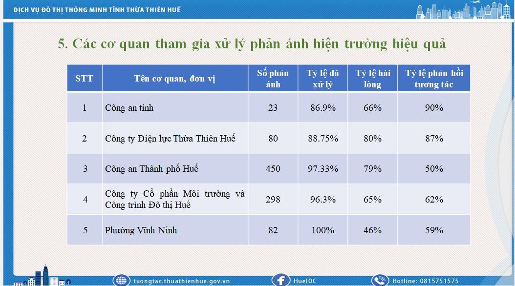 PC Thừa Thiên Huế lọt Top 5 cơ quan tham gia xử lý hiệu quả trên hệ thống với tỷ lệ hài lòng đạt 80%
