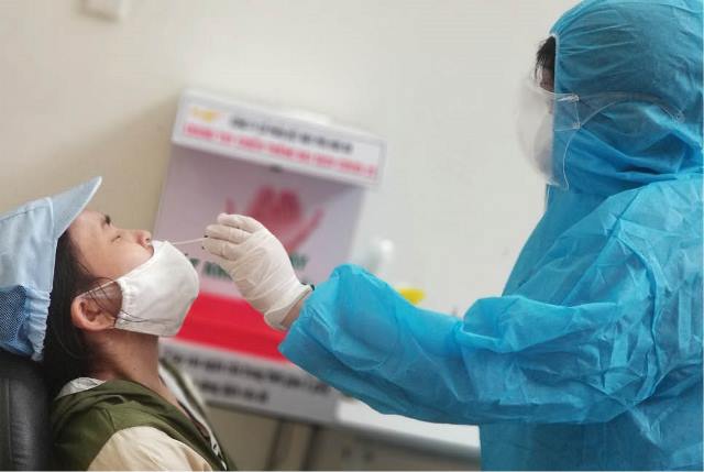 Lấy mẫu test nhanh cho công nhân tại Nhà máy may Phú Hòa An