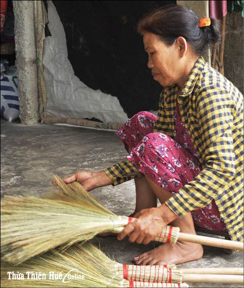 Hiện trên địa bàn thị xã Hương Thủy có khoảng 600 hộ dân theo nghề chổi đót tập trung ở các phường Thủy Phương, Thủy Lương, Phú Bài, giải quyết cho cả nghìn lao động với thu nhập từ 70-100 nghìn đồng/ngày. Tại LN chổi đót Thanh Lam (Thủy Phương), mùa này các hộ gia đình đang tất bật vào vụ làm chổi. Cơ sở sản xuất chổi đót của DNTN Dũng Huệ (của ông Nguyễn Đình Dũng và bà Nguyễn Thị Huệ, tổ 8, phường Thủy Phương) thường trực 30 lao động tại xưởng. Cơ sở này còn “giao khoán” nguyên liệu đót thô cho hàng chục hộ gia đình để gia công từng công đoạn của sản phẩm.