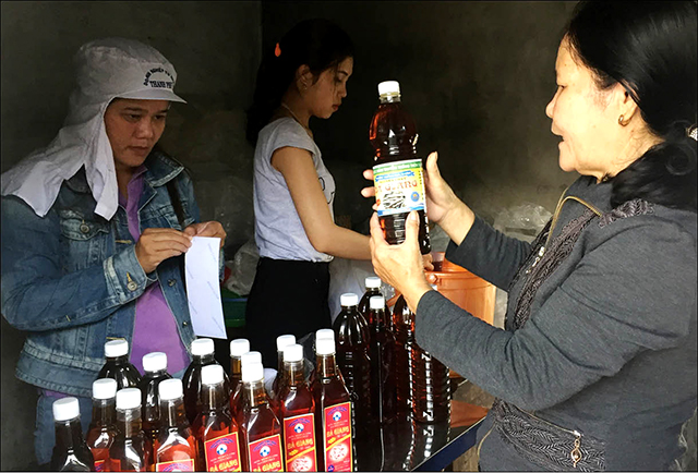 Kiểm tra sản phẩm chuẩn bị trưng bày tại lễ hội "Sóng nước Tam Giang" của cơ sở nước mắm Bà Giang