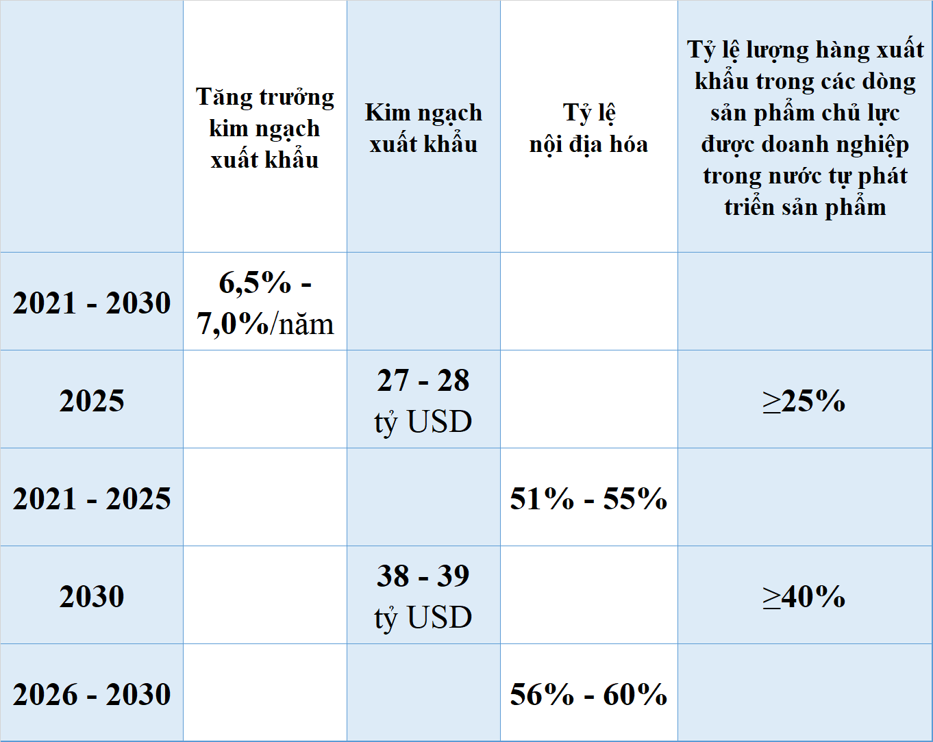 Theo Chiến lược phát triển ngành dệt may và da giày Việt Nam, Việt Nam phấn đấu kim ngạch xuất khẩu ngành da giày đến năm 2025 đạt 27-28 tỷ USD và đạt 38-39 tỷ USD vào năm 2030.