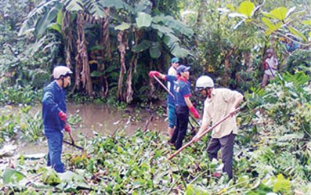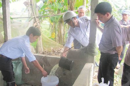 Cán bộ hướng dẫn kỹ thuật sản xuất phân vi sinh cho người dân