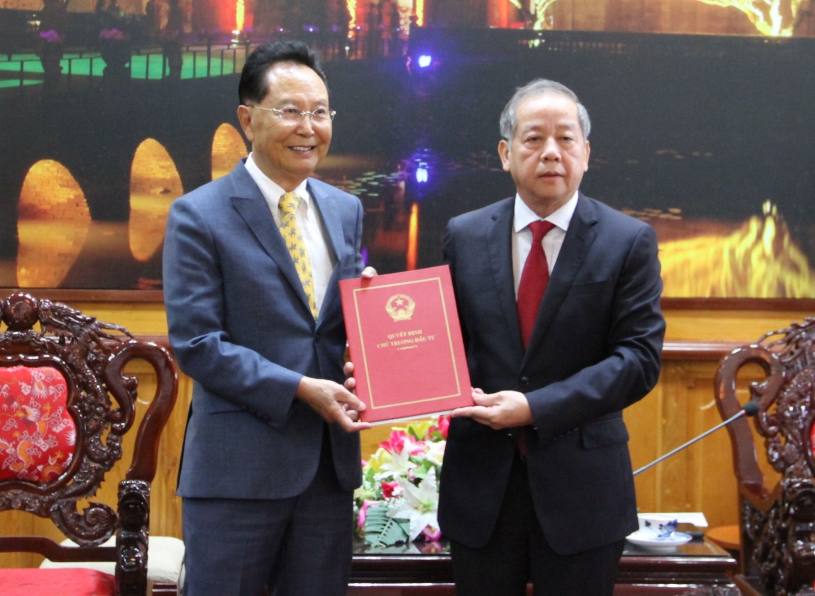 Chủ tịch UBND tỉnh Phan Ngọc Thọ (bên phải) trao giấy chứng nhận cho nhà đầu tư