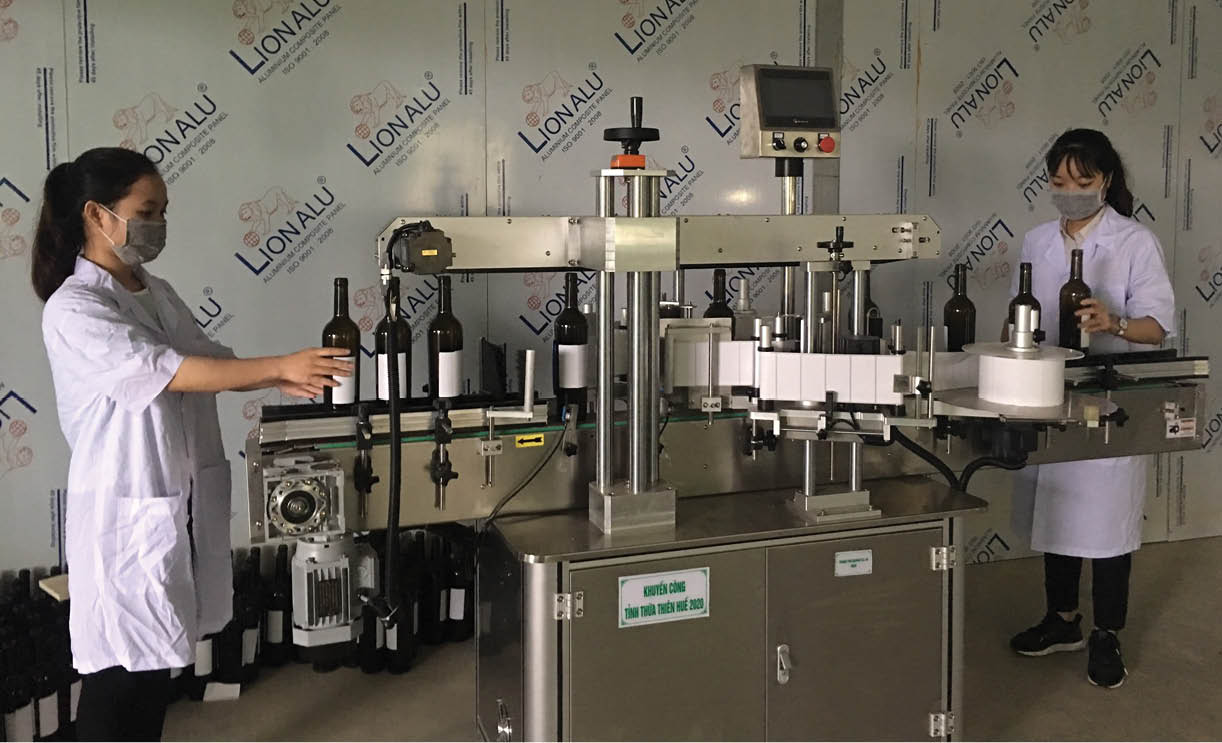 Với mức tiêu thụ trên 10.000 lít rượu vang/năm, nhưng lâu nay dây chuyền đóng chai của công ty đều làm thủ công và bán tự động nên công suất thấp, nhãn chai không đều ảnh hưởng đến sức tiêu thụ. Giữa năm 2020, công ty lập đề án xin hỗ trợ vốn KC đầu tư dây chuyền đóng nhãn chai. Sau khi khảo sát và đánh giá mức tiêu thụ sản phẩm cũng như hiệu quả kinh doanh, Sở Công thương đã phê duyệt đề án hỗ trợ máy đóng nhãn chai rượu vang với mức hỗ trợ 200 triệu đồng, tổng kinh phí đầu tư của DN là 466 triệu đồng.