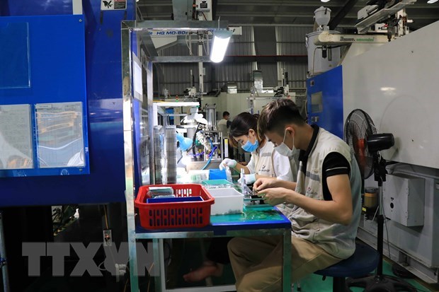 Công nhân làm việc tại Công ty Cổ phần Hanpo Vina, khu công nghiệp Yên Phong, tỉnh Bắc Ninh. (Ảnh: Thanh Thương/TTXVN)