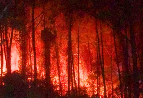 Lửa bùng phát dữ dội ở rừng thông đặc dụng do hành động bất cẩn trong lúc thắp hương của bà Y