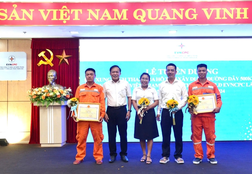 | Anh Đoàn (ngoài cùng bên phải) được PC Thừa Thiên Huế tuyên dương với thành tích tham gia hỗ trợ Đường dây 500kV Quảng Trạch- Phố Nối và khắc phục lưới điện do bão Ya-gi tại Quảng Ninh năm 2024 |