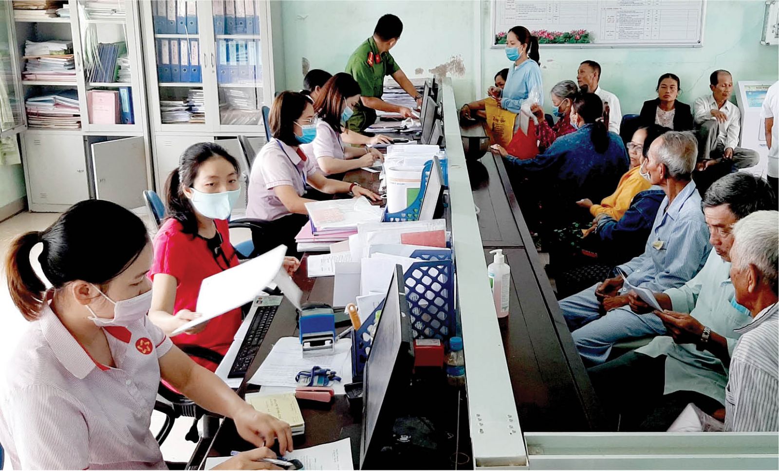 Người dân đến giao dịch tại bộ phận “một cửa” Quảng Thành khá đông nhưng trật tự, hài lòng