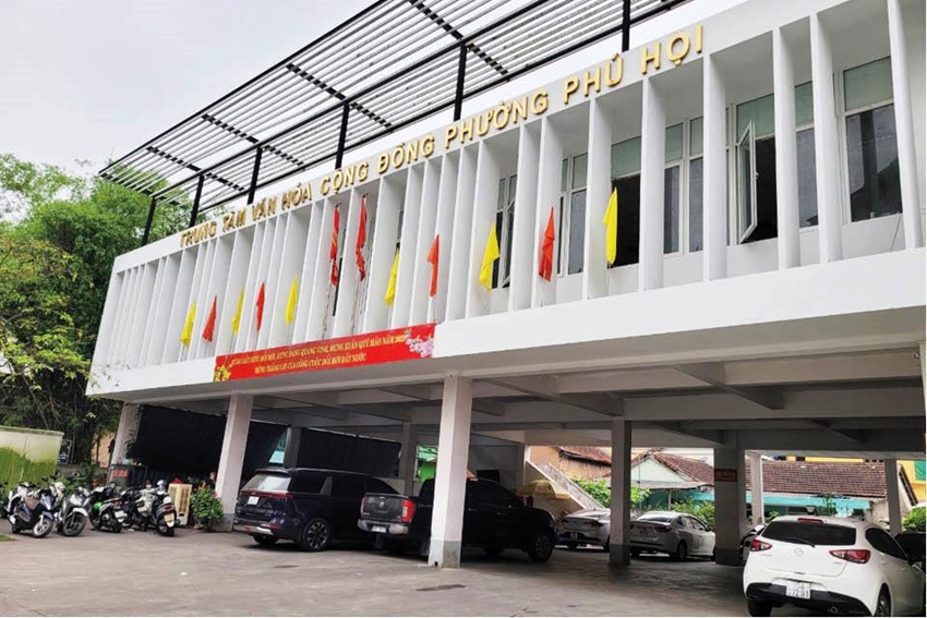 | Trung tâm văn hóa cộng đồng phường Phú Hội làm nơi sử dụng đậu đỗ xe cho du khách tham quan phố đi bộ |