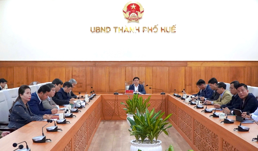 Tại điểm cầu trực tuyến thành phố Huế có UVTV Thành ủy, Phó Chủ tịch Thường trực UBND thành phố Nguyễn Thanh Bình chủ trì hội nghị.