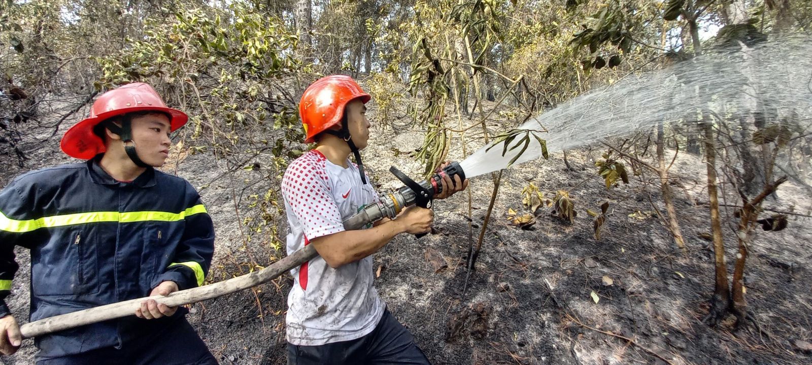Do địa thế hiểm trở, xe chữa cháy không thể tiếp cận khu vực đỉnh đồi nên gần 200 người của các lực lượng tham gia chữa cháy chỉ có thể dập lửa bằng phương tiện thô sơ.