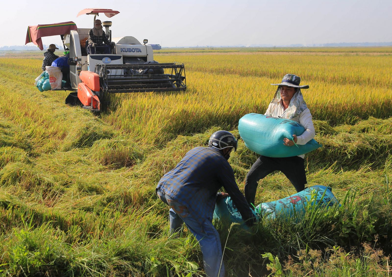 Người dân Hương Phong (TX Hương Trà) khẩn trương thu hoạch lúa