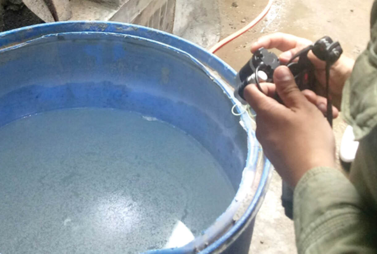 Nhân viên y tế kiểm tra chỉ số bọ gậy trong các vật chứa nước