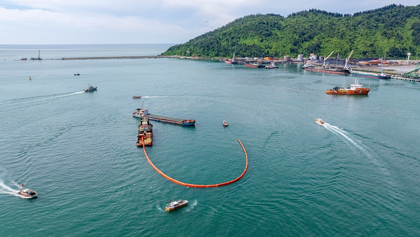 Thu gom dầu tràn trên biển về các vị trí xử lý an toàn